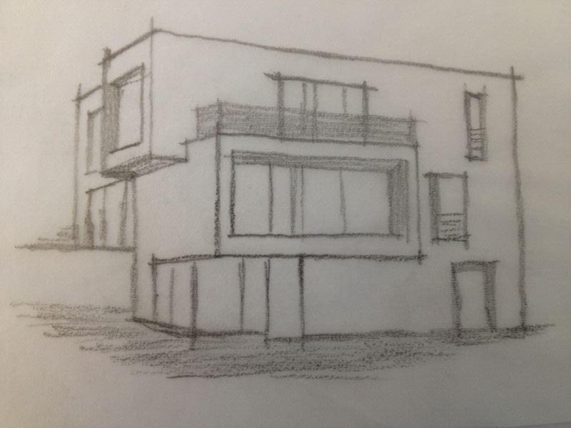 Das einfachste Mittel der Architekturdarstellung ist eine Skizze, eine schnelle Strichgrafik.
